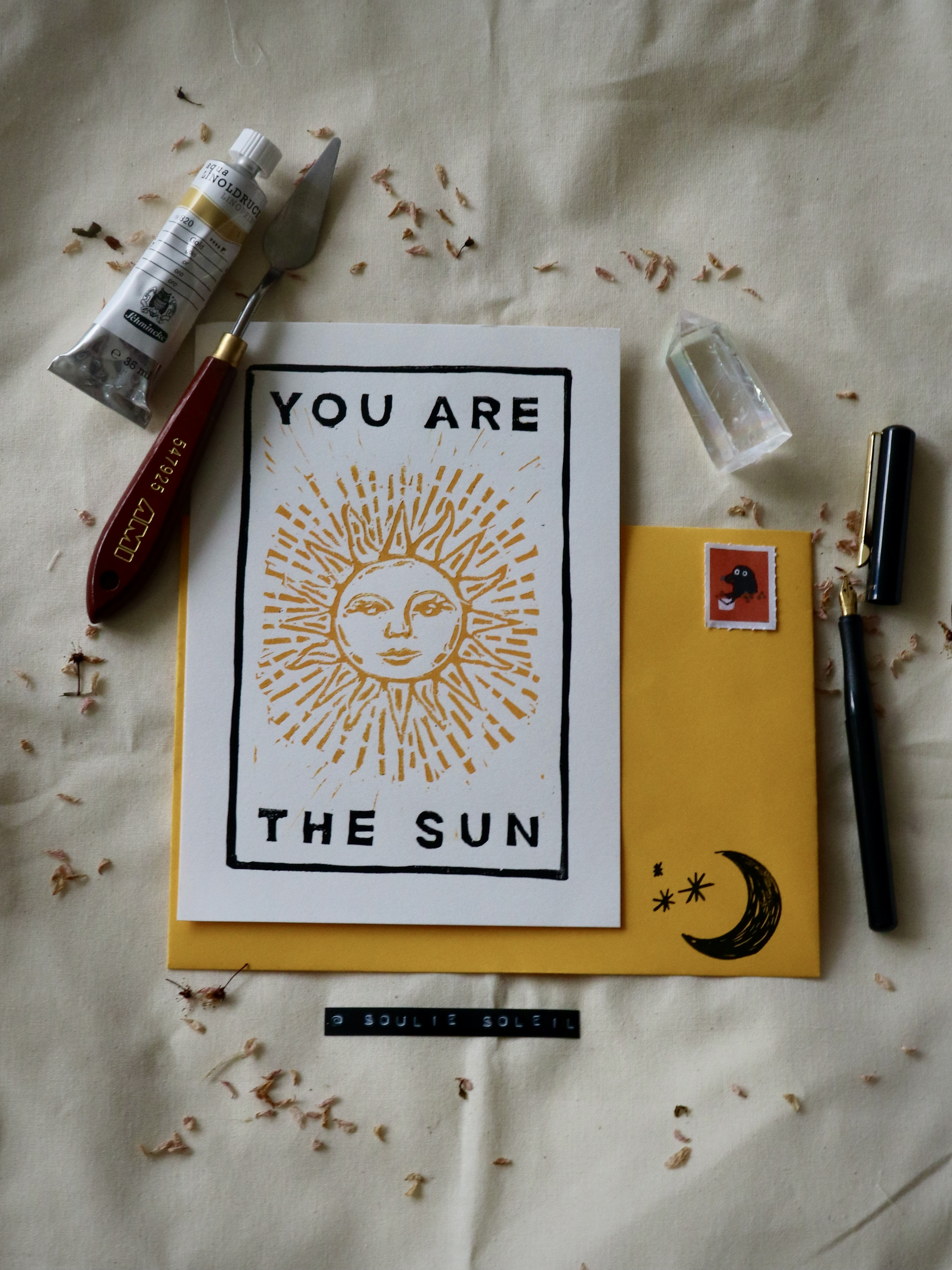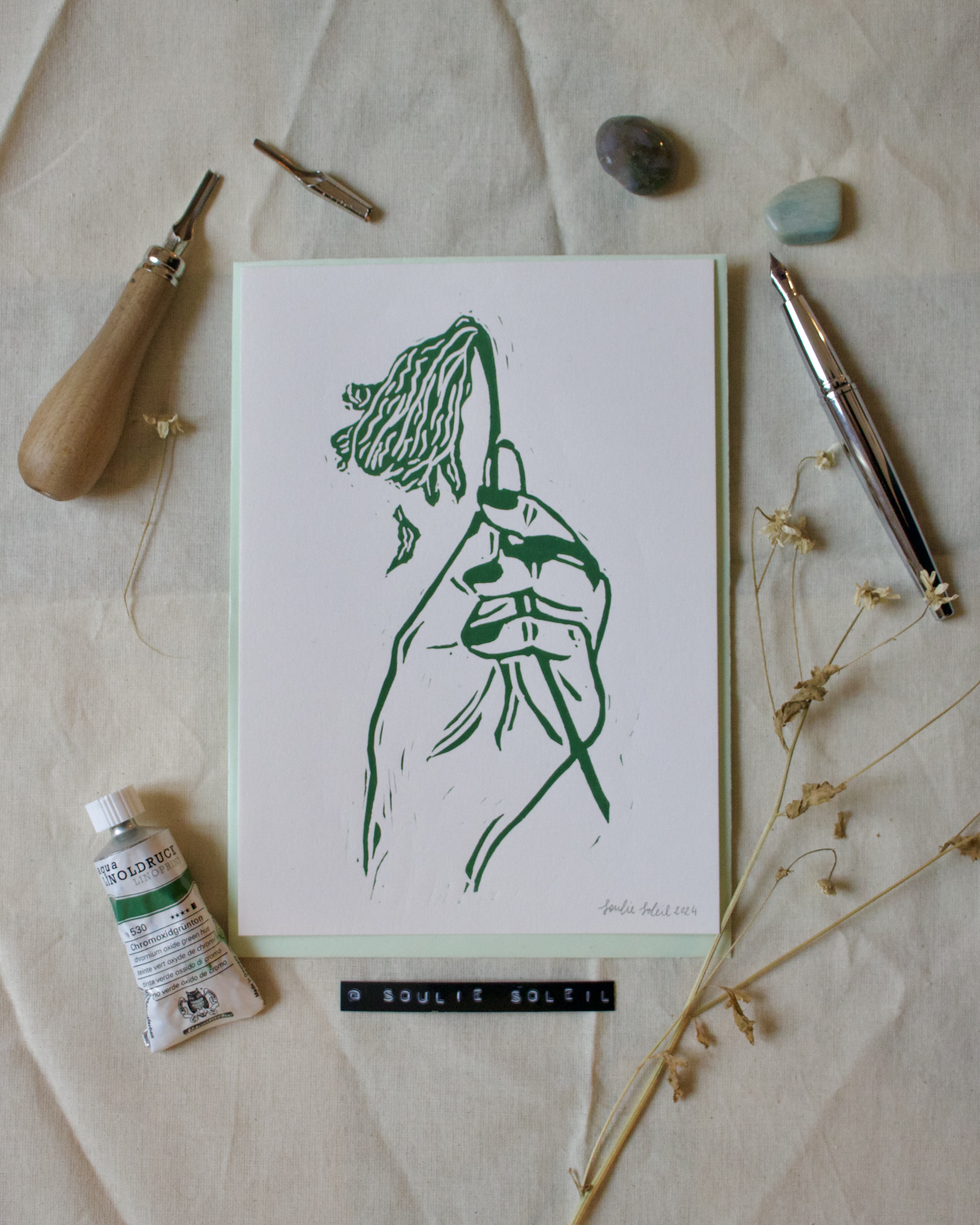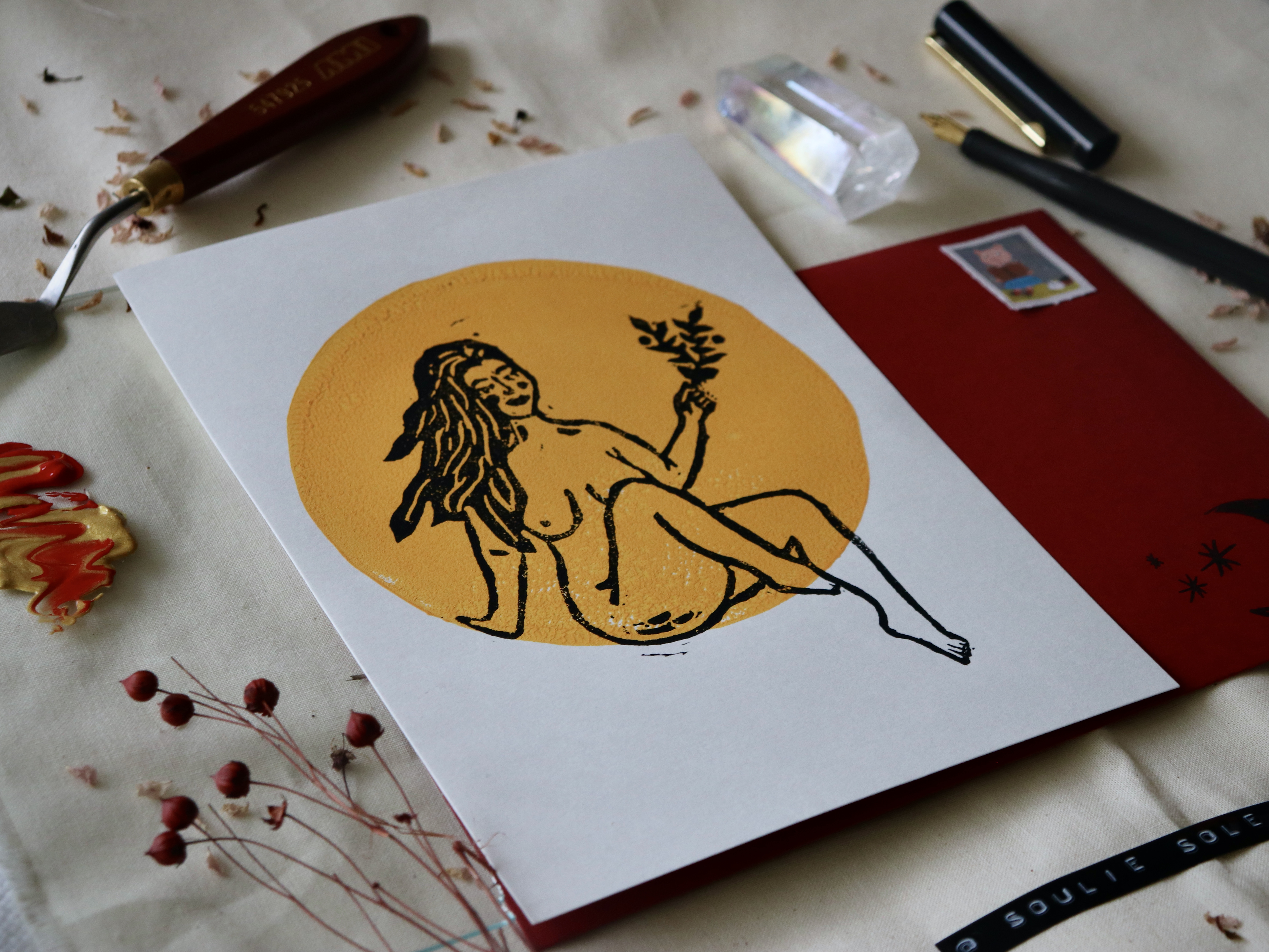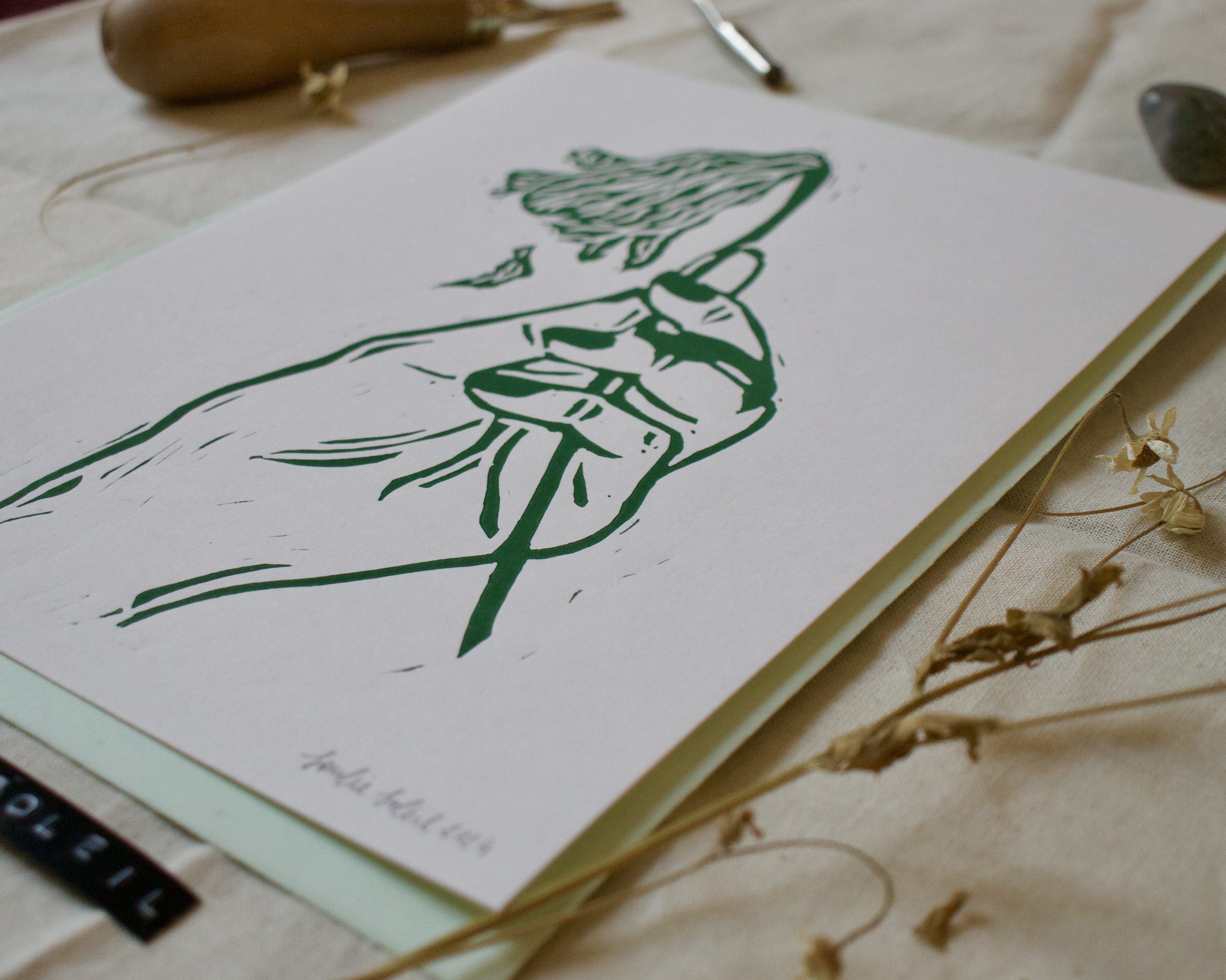 Handprinted A5 lino print with envelope.