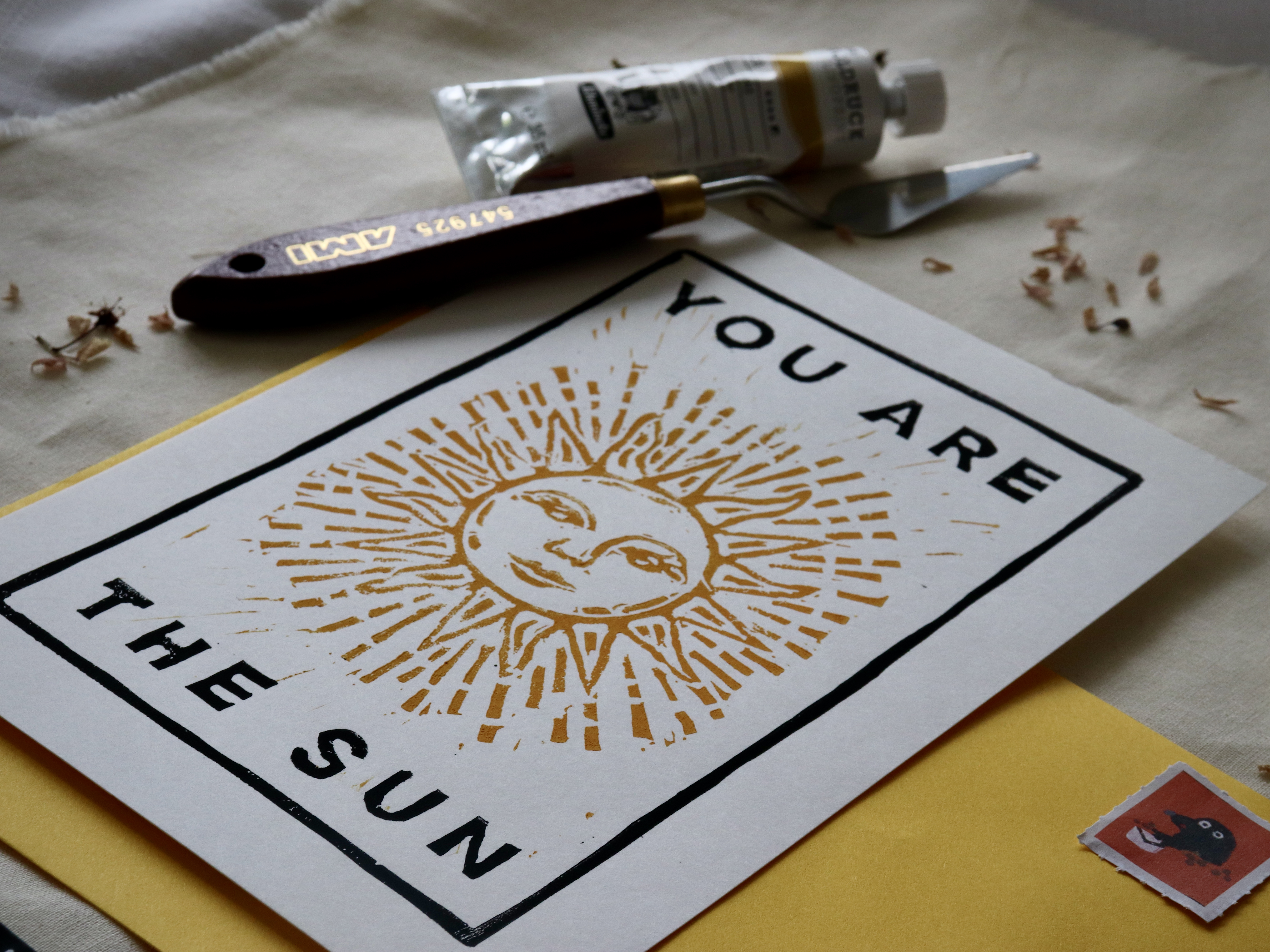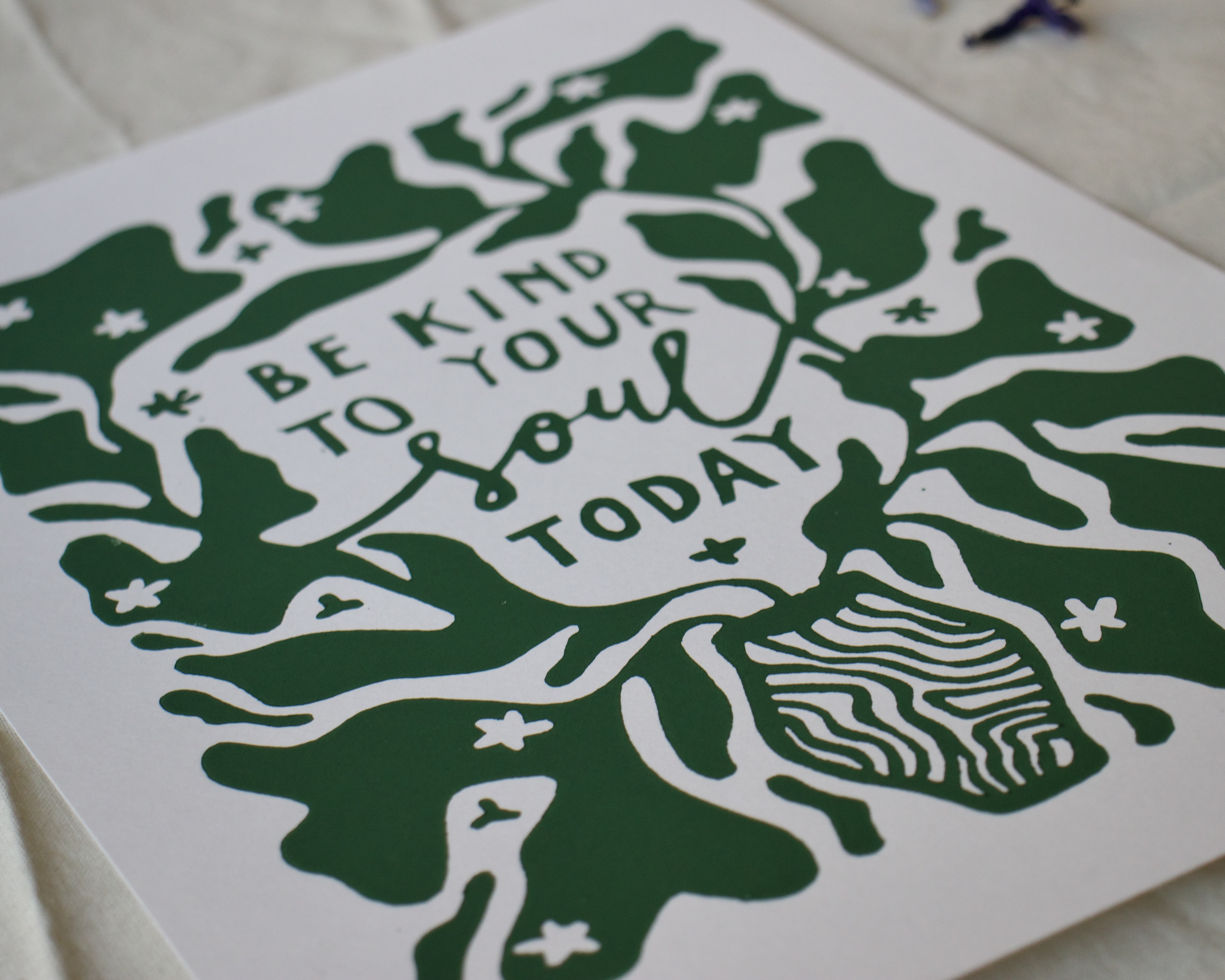 Handprintd A4 lino print, inspired by my wonderful sister.