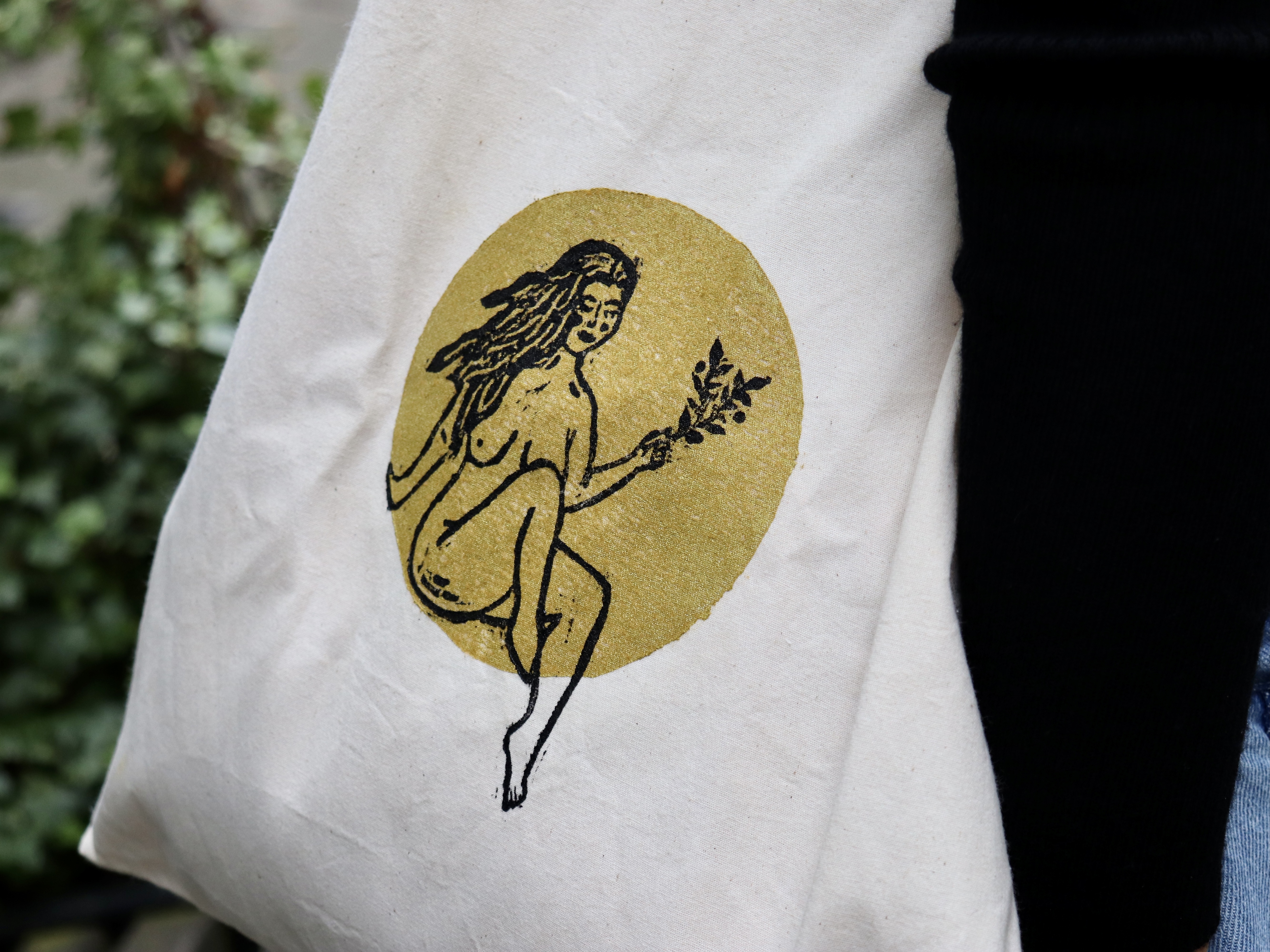 Handprinted lino tote bag. 100% cotton printed with Speedball permanent fabric lino ink.