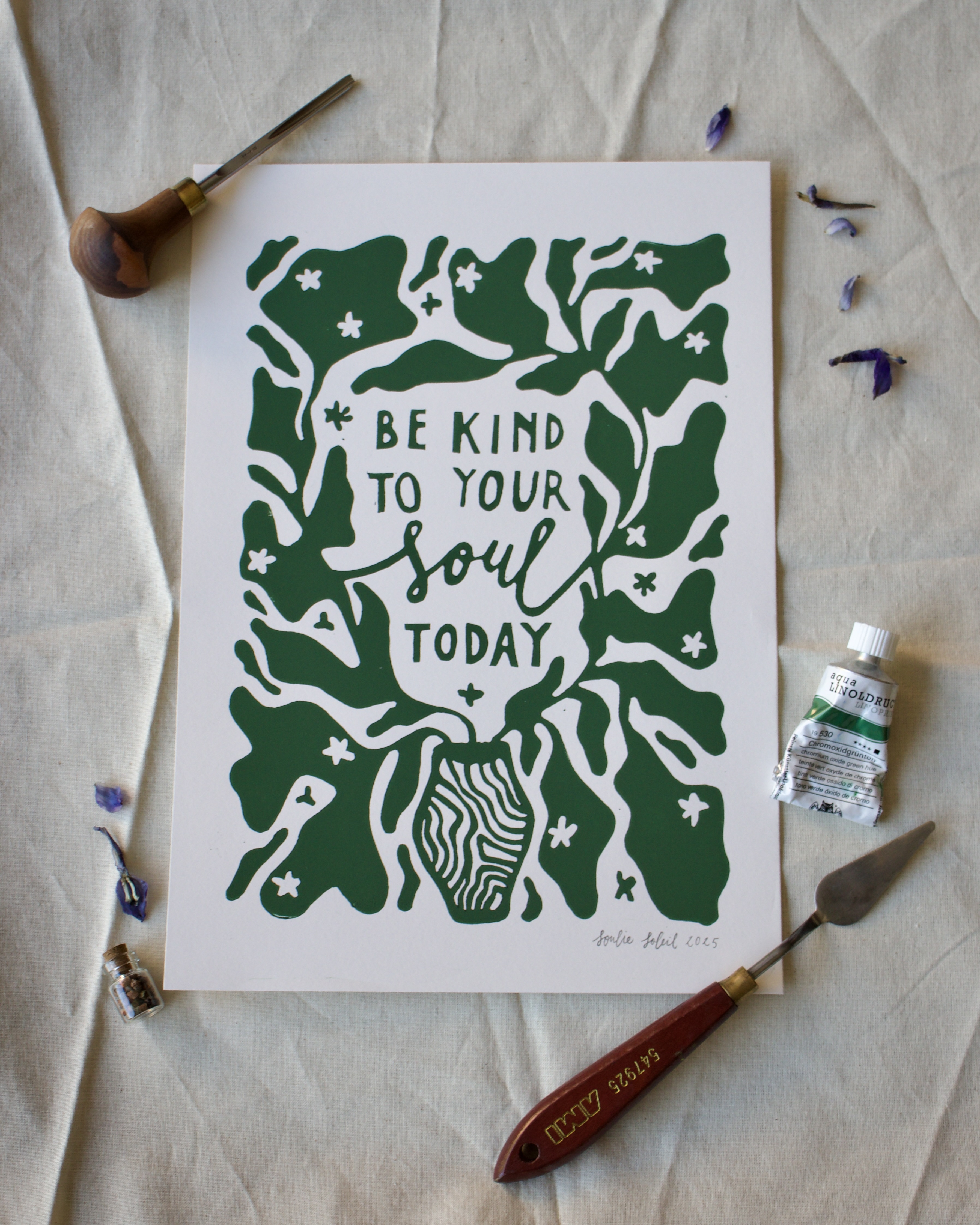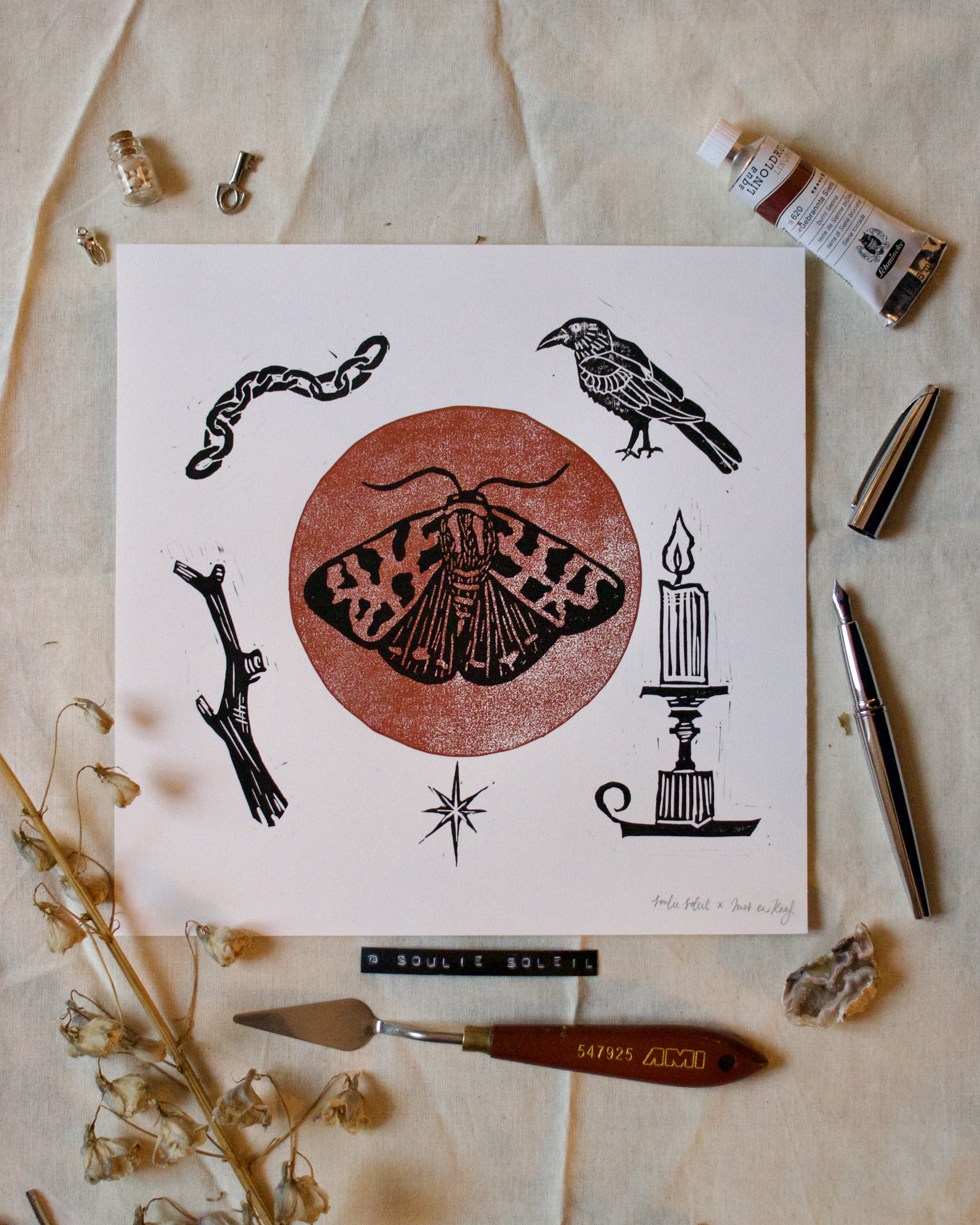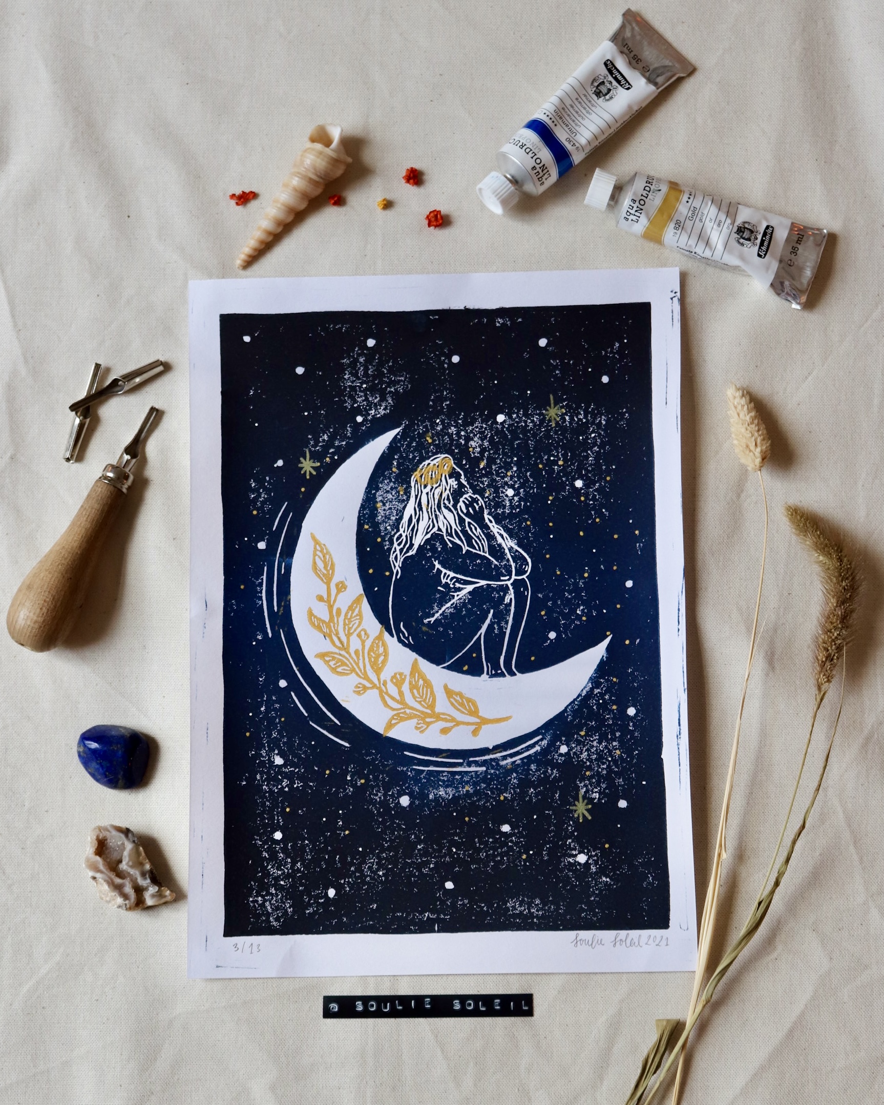 Handprinted large A3 lino print. By purchasing one of these prints, you directly support training my assistance dog Soleil.