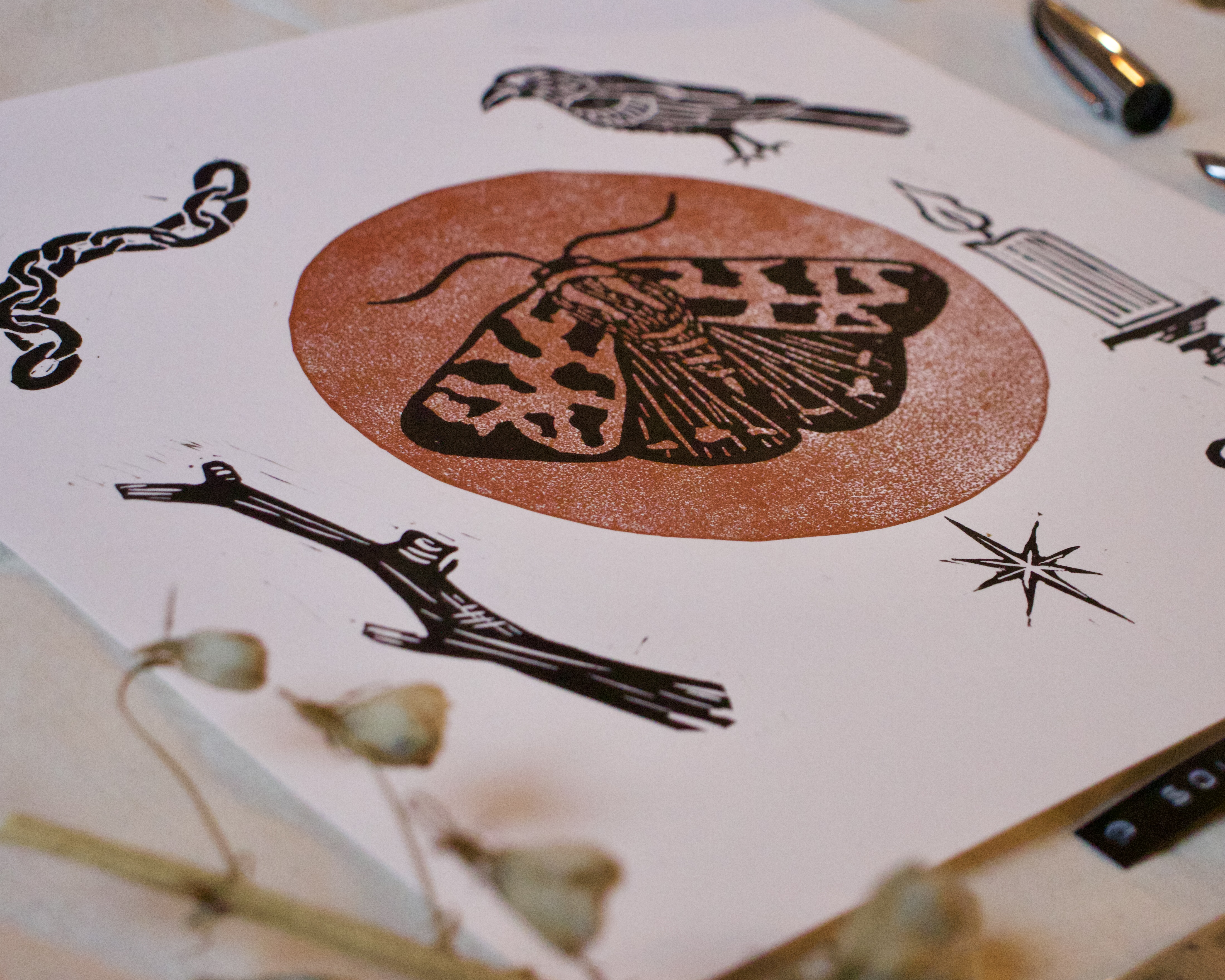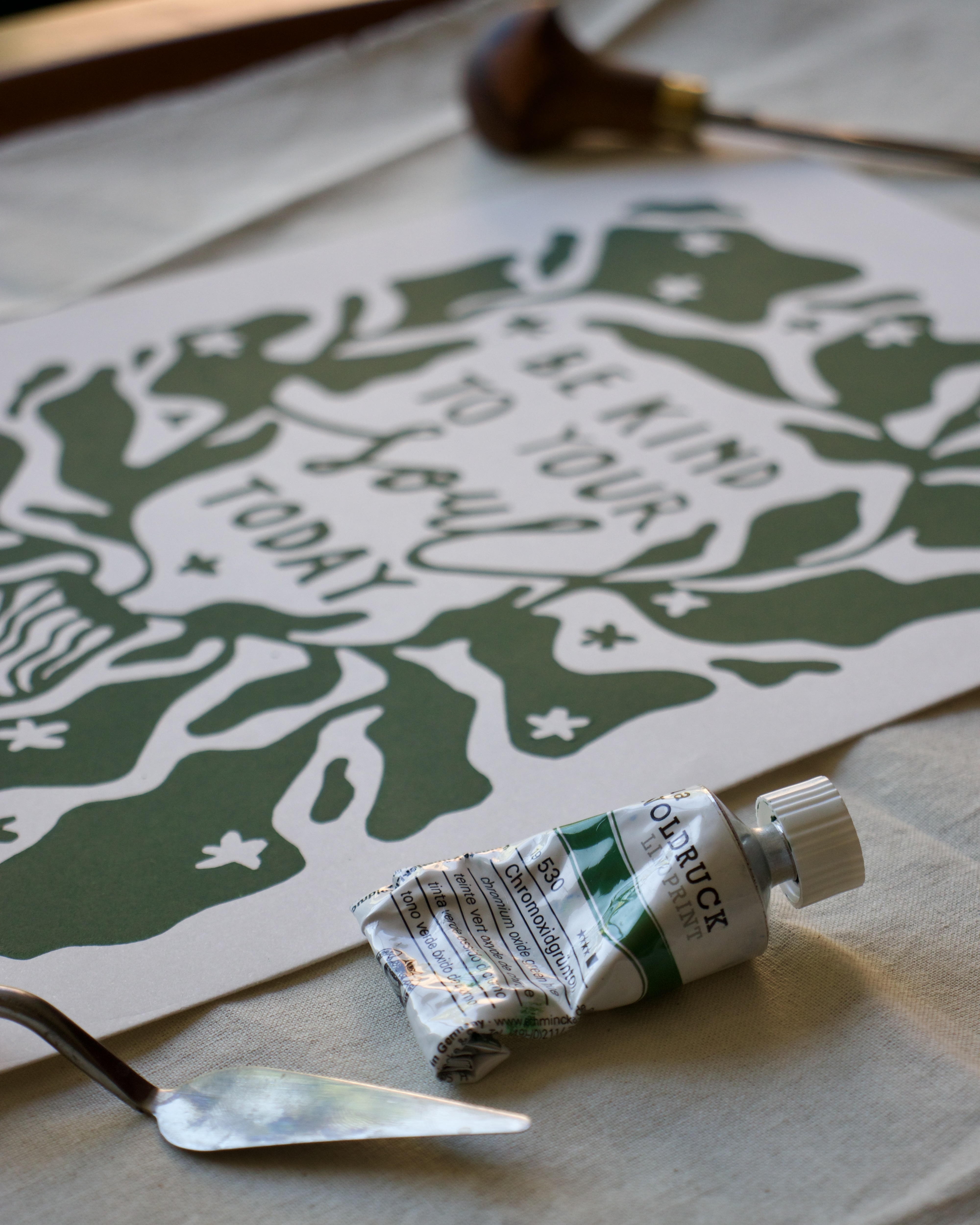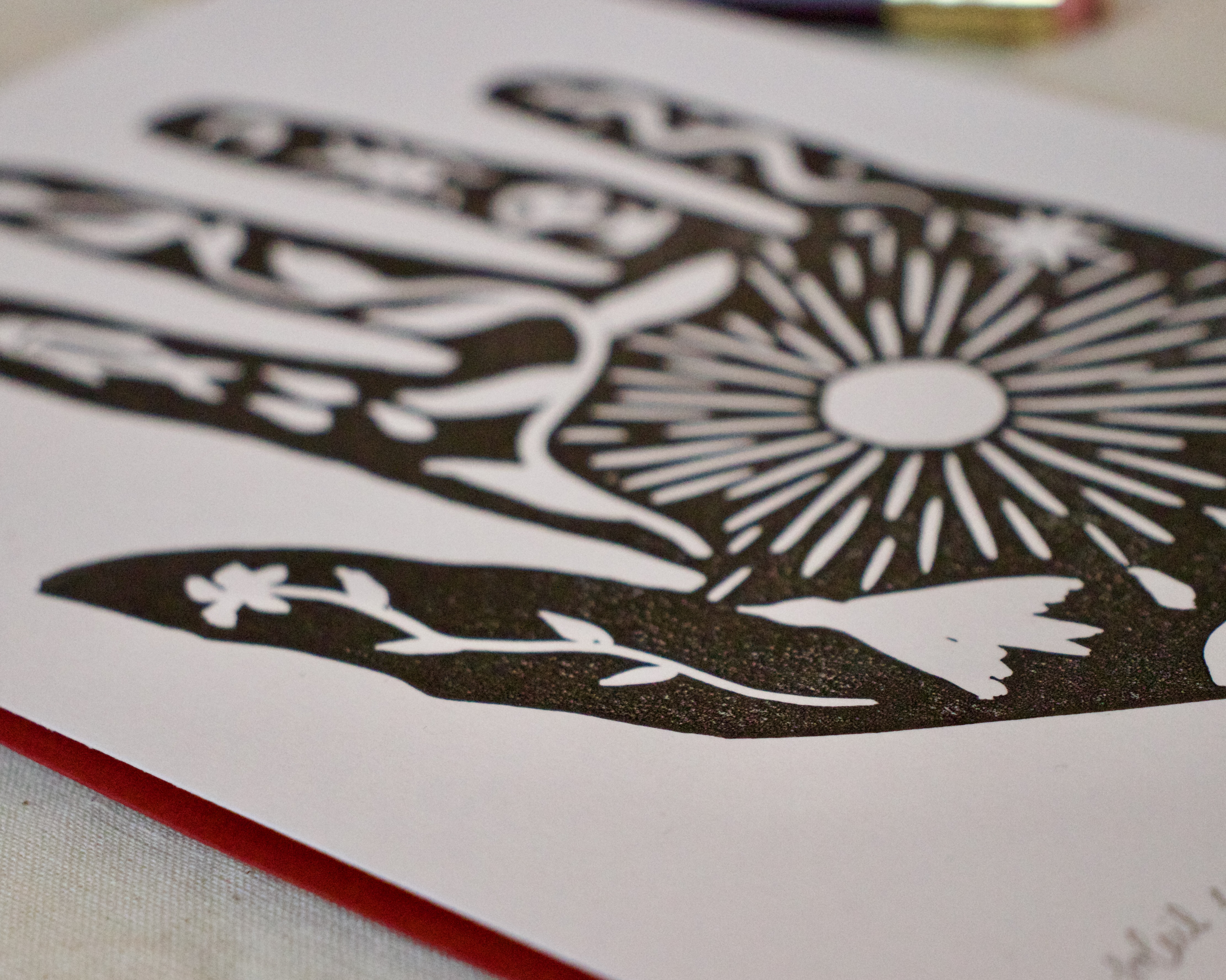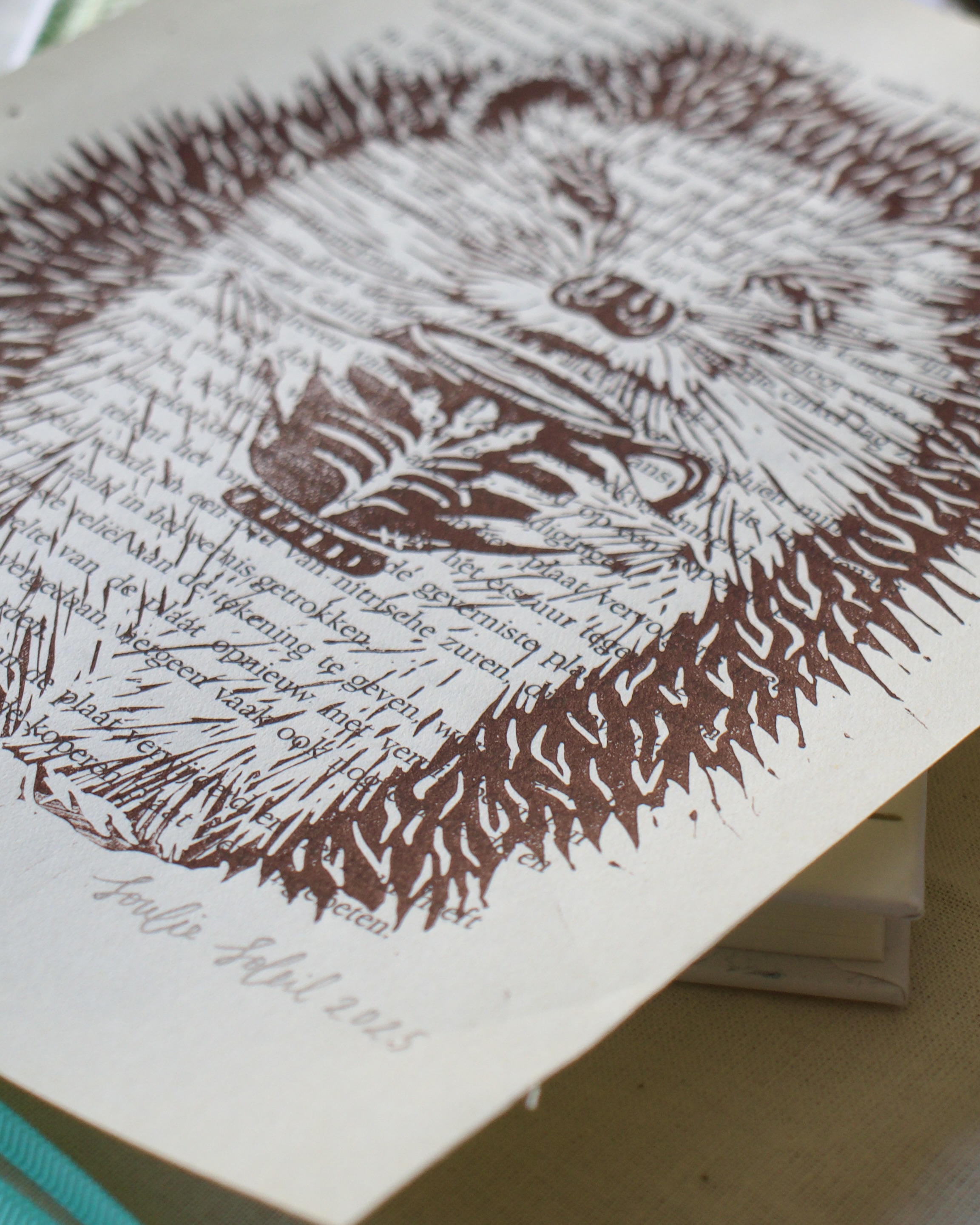 Handprinted A4 lino print.